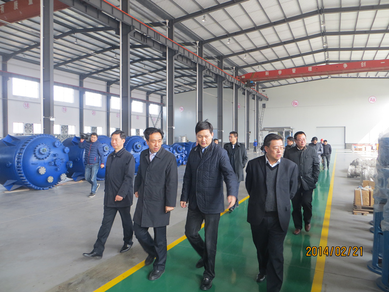 公司董事长陈强先生带领各位领导参观了5号车间及制药设备车间,详细介绍了车间的主要设备、产品及生产能力。市委姜书记对我公司在过去一年中取得的成绩给予了高度评价,并对我公司2014年的生产经营目标提出了新的要求,希望我公司在今年更上一层楼,取得更好的成绩。